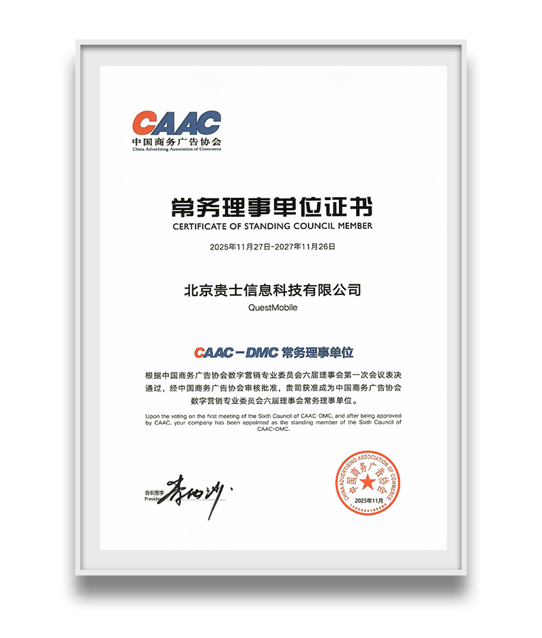 QuestMobile成为中国商务广告协会电商及效果营销研究工作委员会理事单位